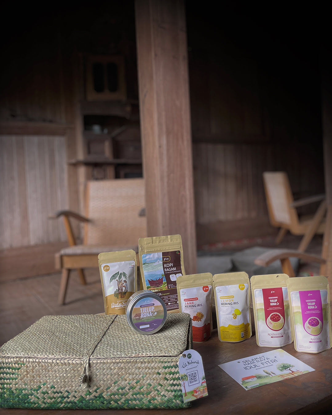Paket Hadiah Berisi Aneka Produk dari Desa dengan Anyaman Mansiang dilengkapi Kartu Ucapan. Bisa Custom ataupun Pilih Paket yang Tersedia.