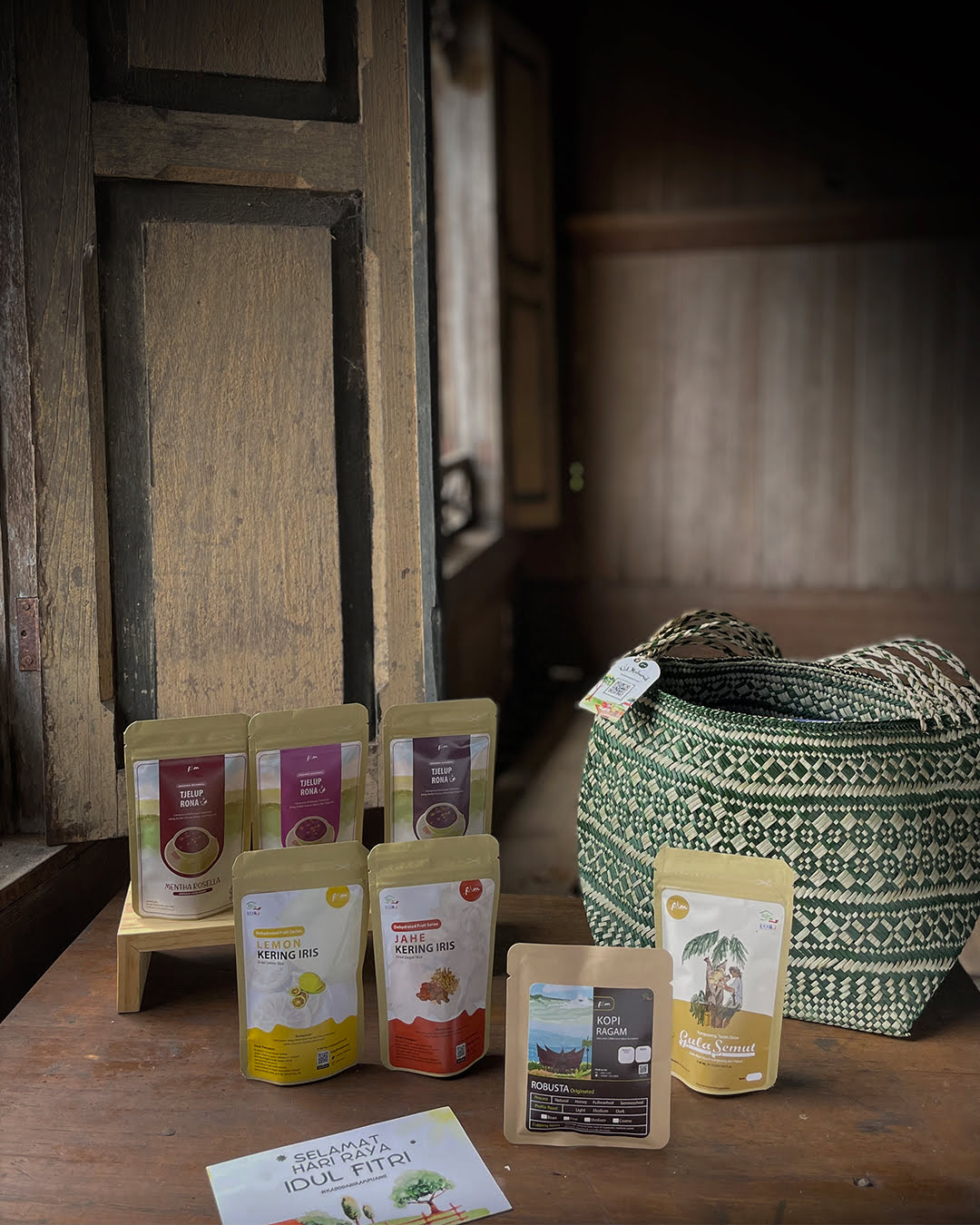 Tas Anyaman Mansiang Merapi, Kartu Ucapan. Kopi Ragam Speciality Coffee Robusta 200gr. Gula Semut Murni 250gr, 3 Pack Dehydrated Fruit Series @25gr (Lemon, Lime, Ginger), 3 Pack Tisane Tjelup Rona varian lengkap (Lembayung, Magenta, Mentha Rosella)